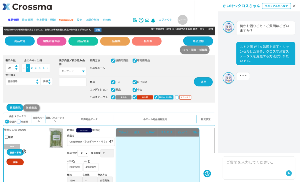 画面右部に表示されるチャット欄に、操作に関する質問を入力するだけで、