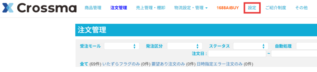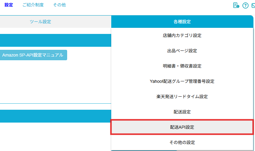 【2】各種設定内の[配送API設定]をクリックします。