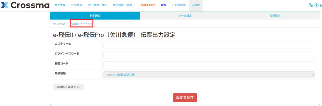 【3】佐川スマートAPIのタブをクリックします。