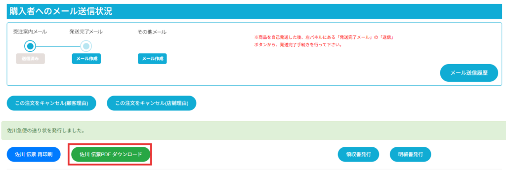 【3】[佐川伝票PDFダウンロード]をクリックします。