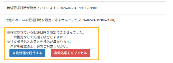 ※ユーザー様宛にも「日時指定不可注文の自動処理継続のお知らせ」を送信しています。