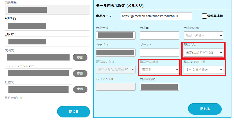 クロスマでは、商品管理画面から メルカリShops用の発送日数を設定し、出品時に反映できます。