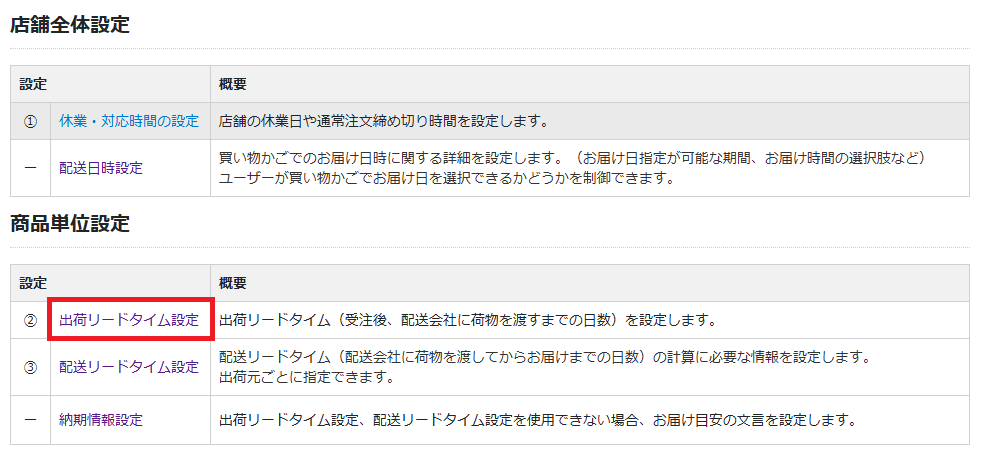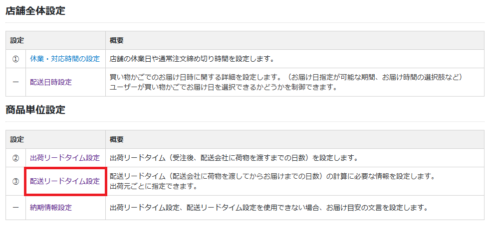 - 配送リードタイム(出荷 → 配送完了までの日数) を設定できます。