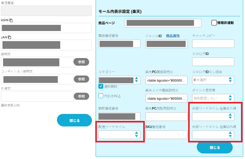 クロスマの商品管理画面で「出荷リードタイム」を空欄のままにしていても、 RMSで「自動選択」に設定されているリードタイムが適用されます。