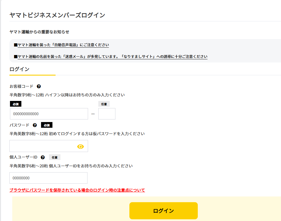 ヤマトビジネスメンバーズへアクセスします。