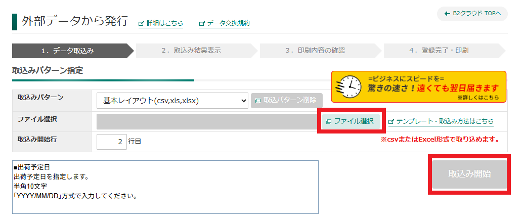 ヤマト運輸 B2クラウド用フォーマットの注意点