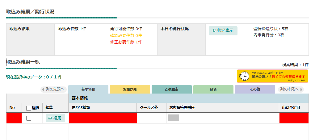 【4】取込結果を確認し「印刷内容の確認へ」